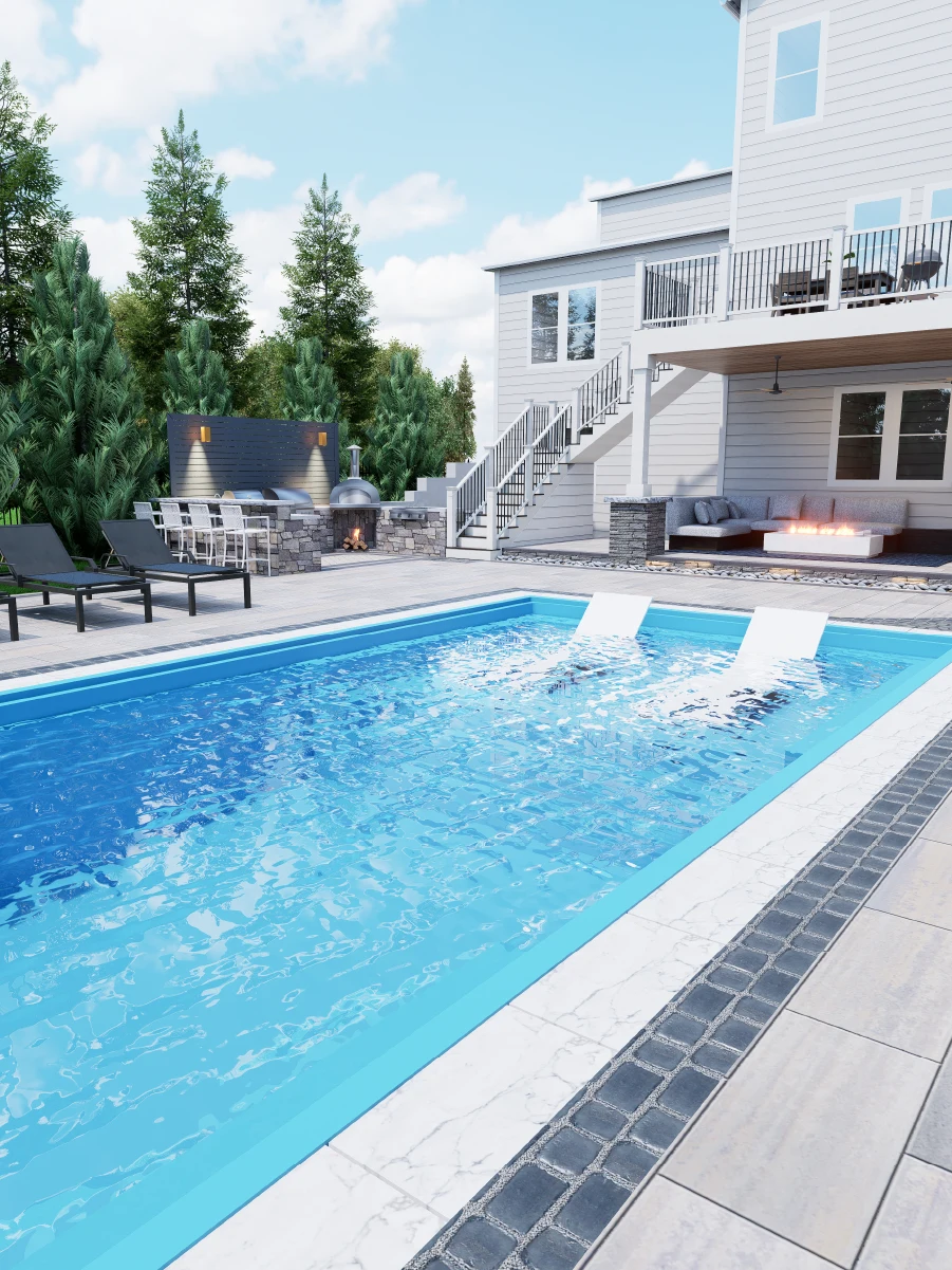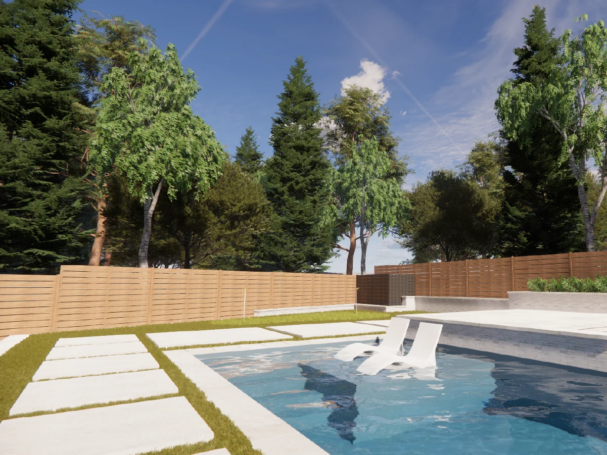 Photorealistic Hardscape Visualization for patios, pools, and exteriors.