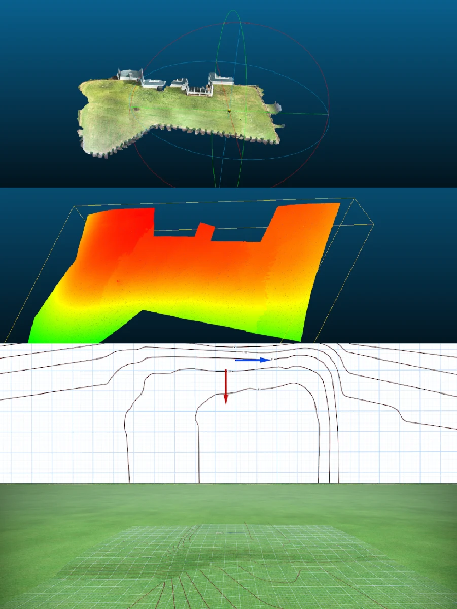 We process your video to extract topographical data, building a precise 3D base model of the existing terrain.