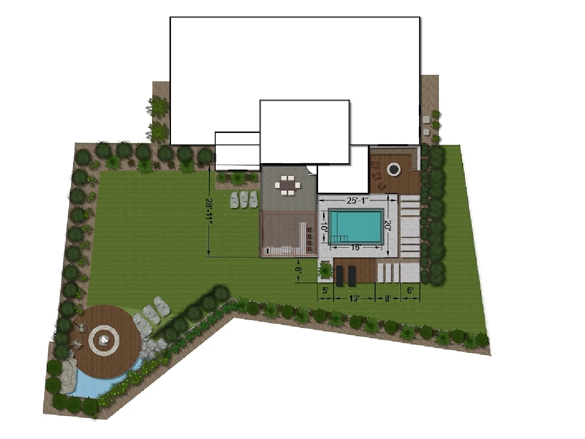 Comprehensive pool rendering services that place the water feature in a complete backyard context.