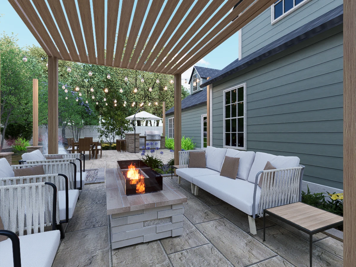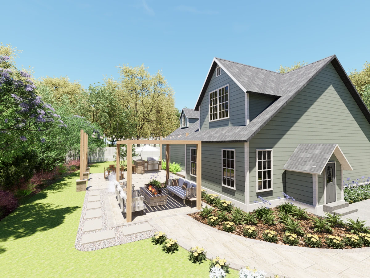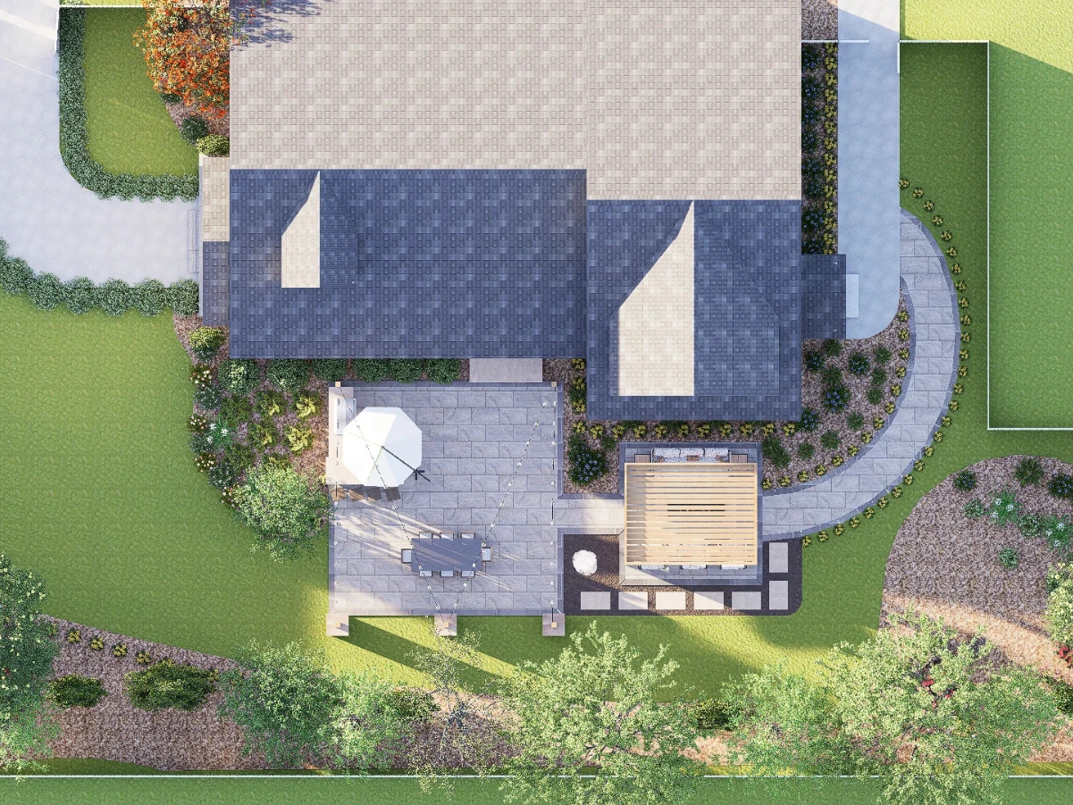 Mid-sized backyard renovations are the bread and butter of most hardscapers. This render helps them upsell “luxury”