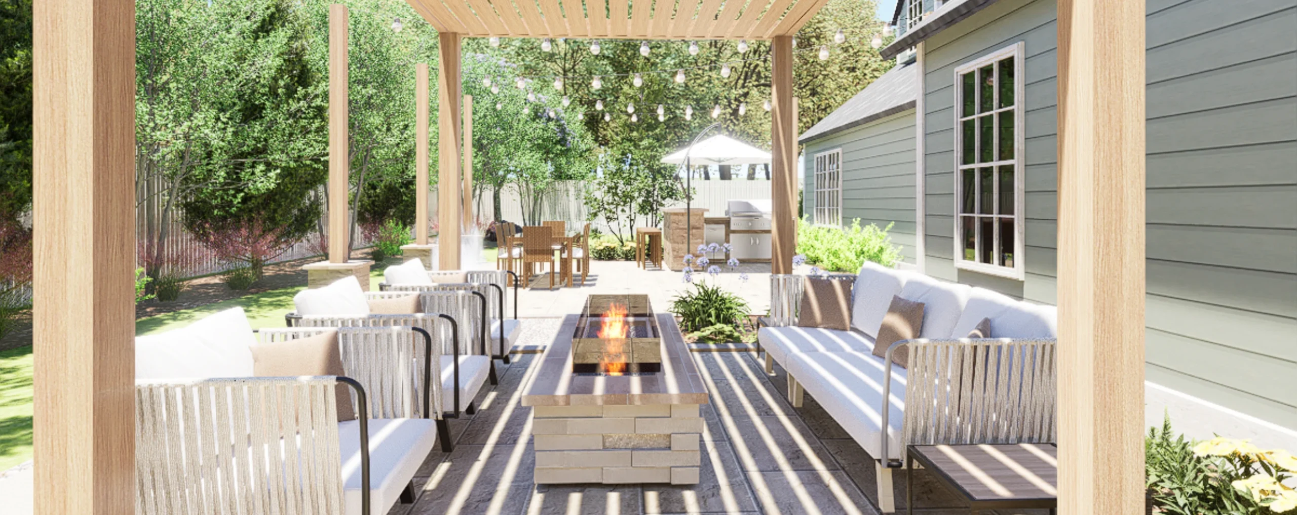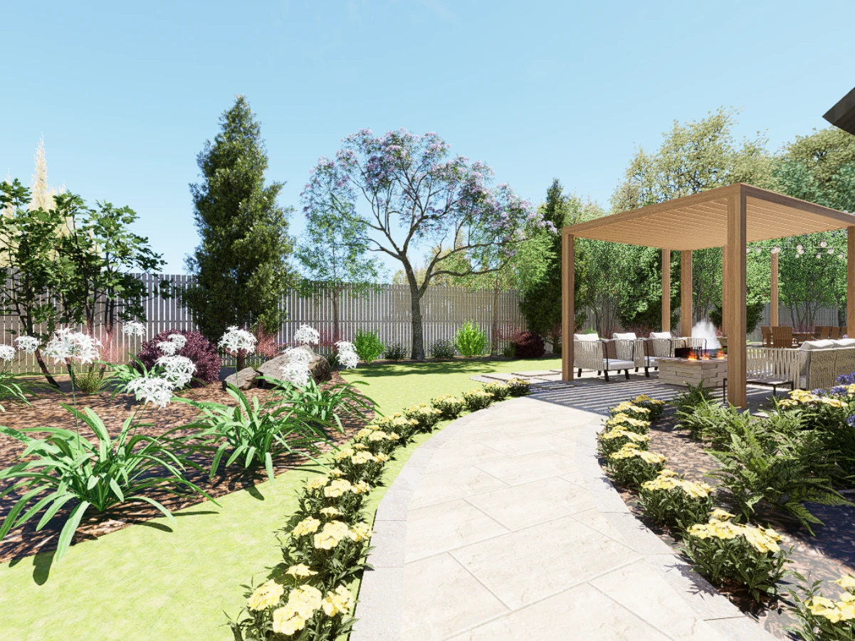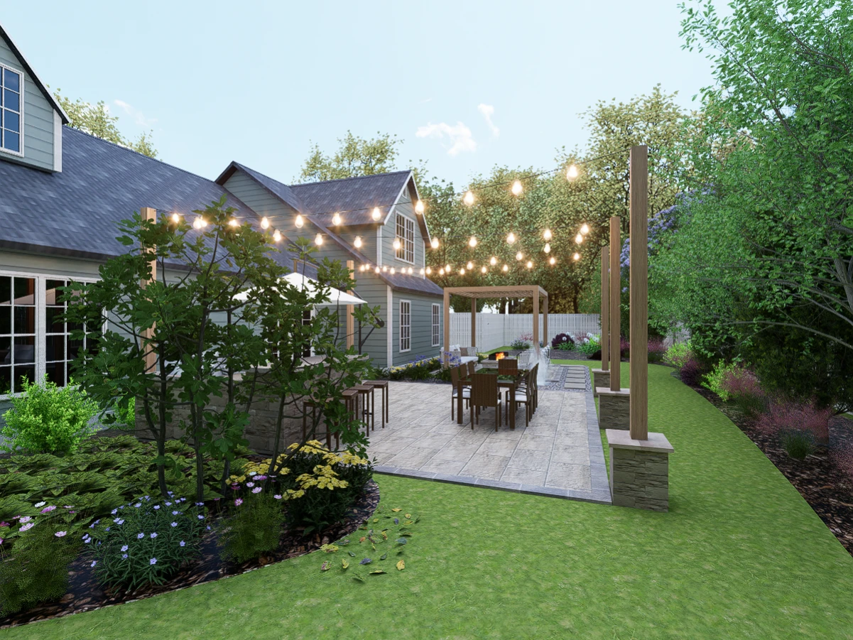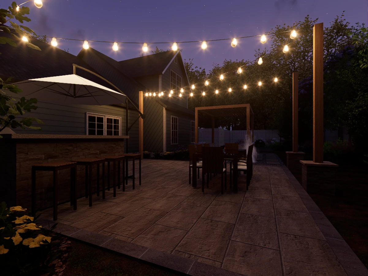 High-fidelity 3D renderings that prove how strategic lighting and professional spatial planning can transform mid-sized backyards into high-end private retreats
